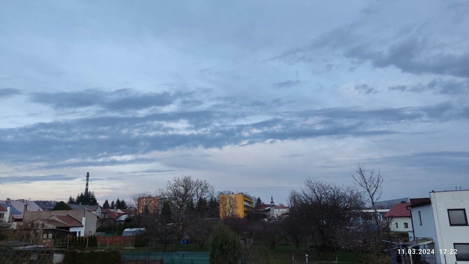 Večerní obloha. Oblačno. Bezvětří. Vlhkost 64%