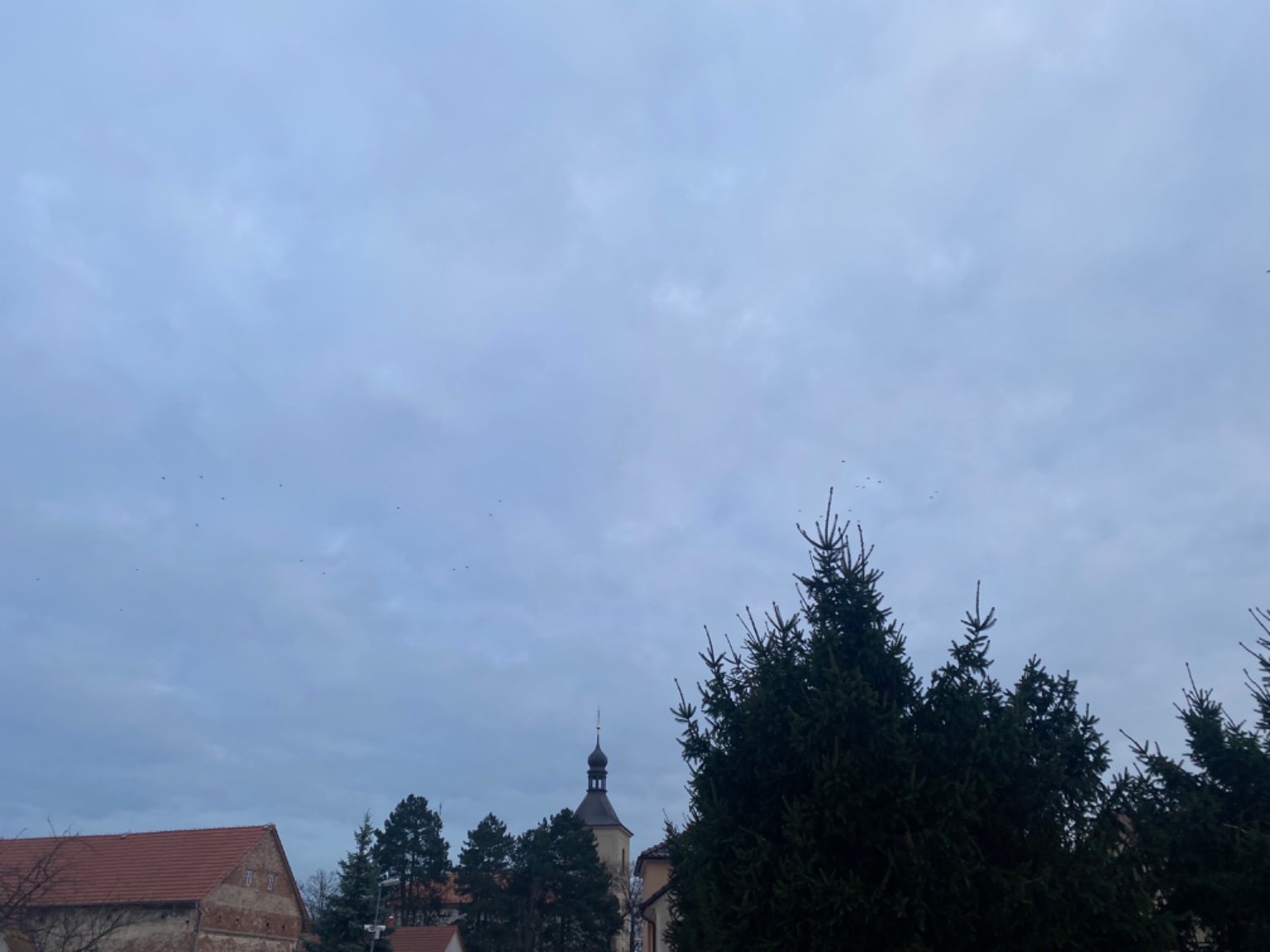 Zataženo, vývoj oblačnosti. Vítr 1 m/s proměnlivý. Vlhkost 86%. Max T dnes 13,6°C