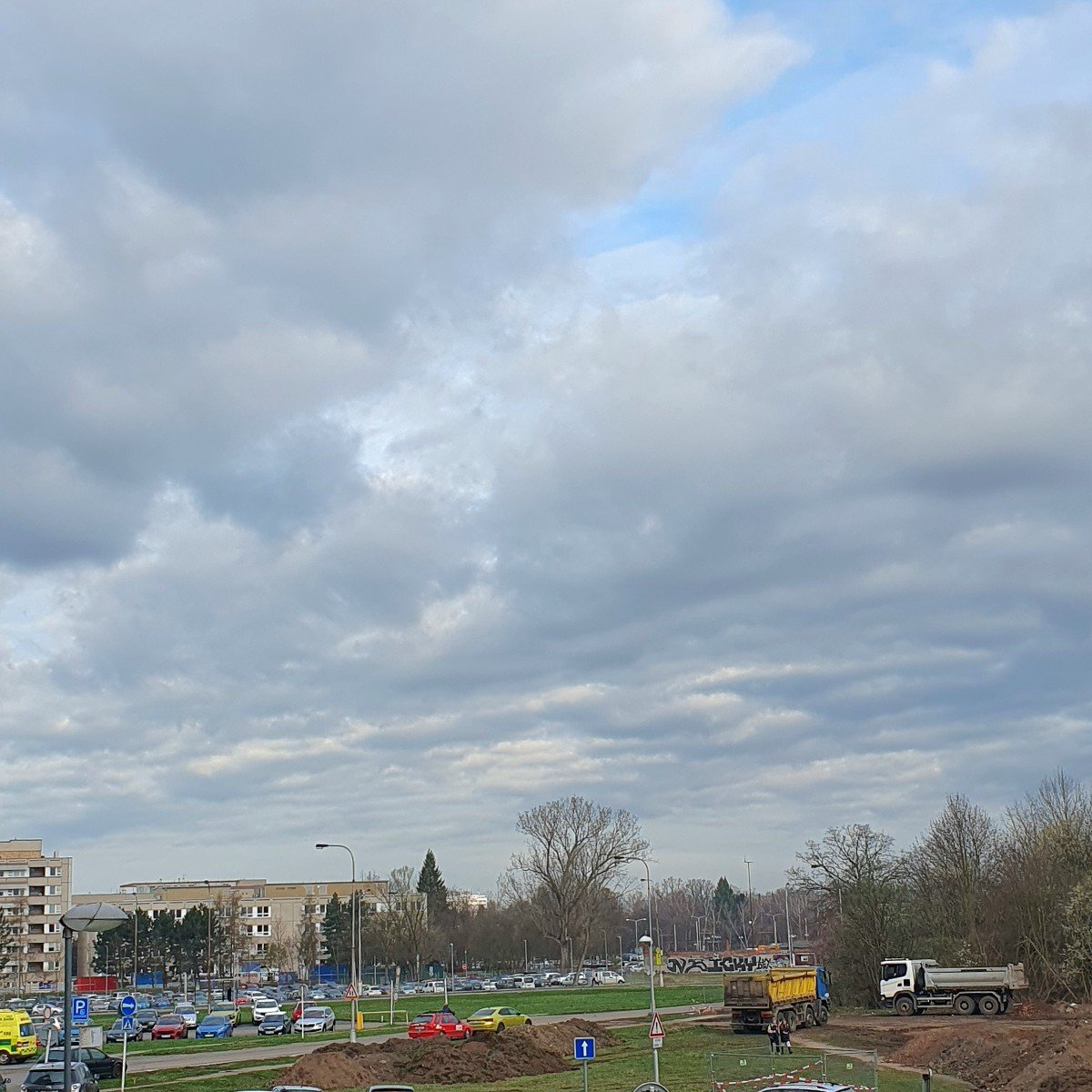 0,5°C, Polojasno, Sníh: 0 cm. Přizemni pára v městkem lese.