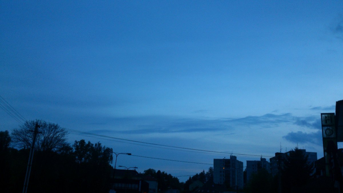 Klidno,tlak 1014hPa,vlhkost 51%,zatahuje se a Slunce zapadá..