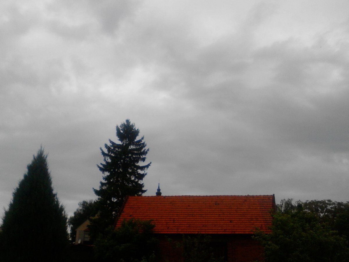 Slabý vítr,tlak 1013hPa,vlhkost 75%.Po ranním dešti,při kterém napršely 2 mm se oblačnost protrhává.