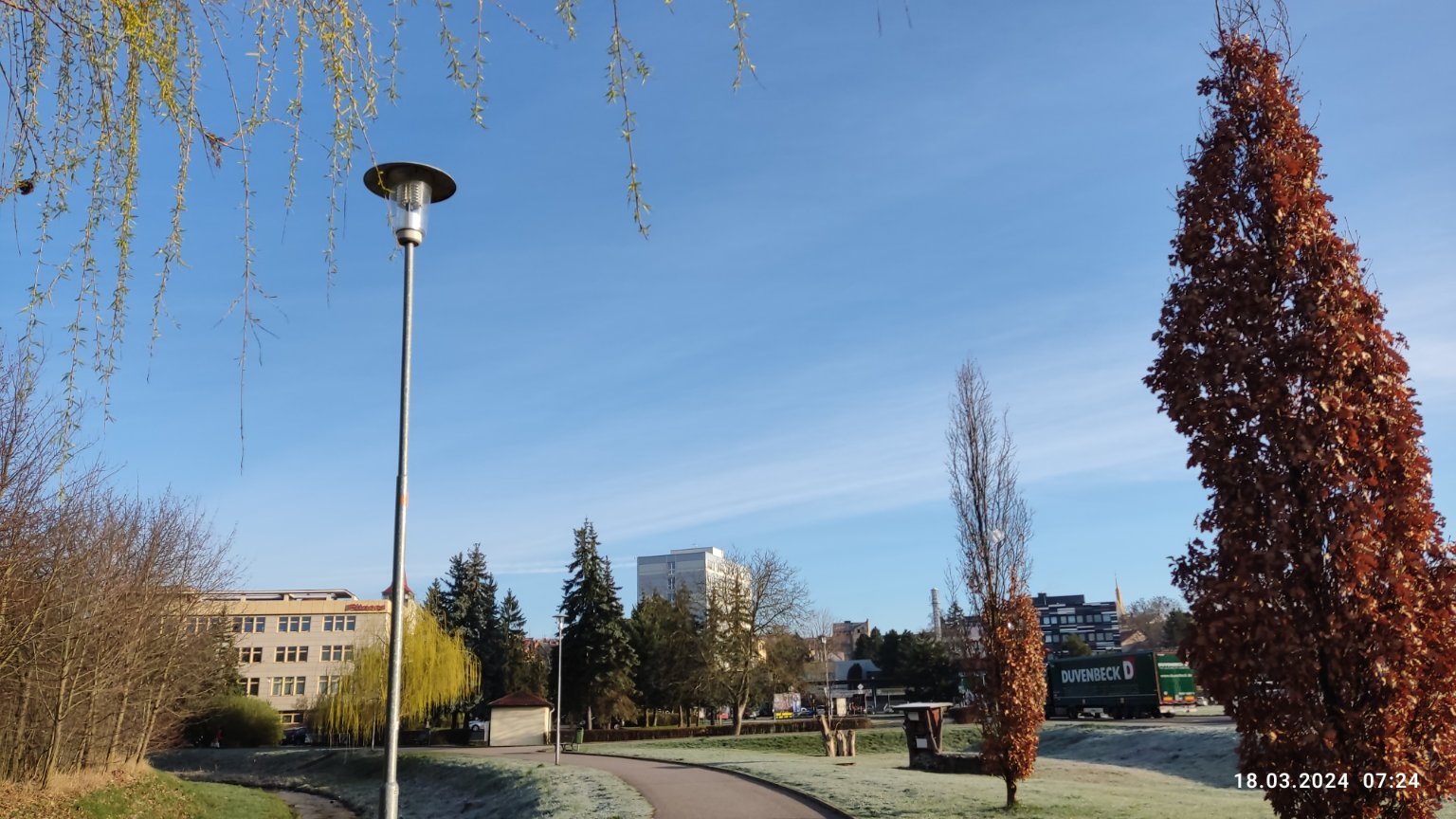 Klidno nebo jen slabý vítr, nejnižší noční teplota byla -1,1°C. Tlak 1020 hPa.