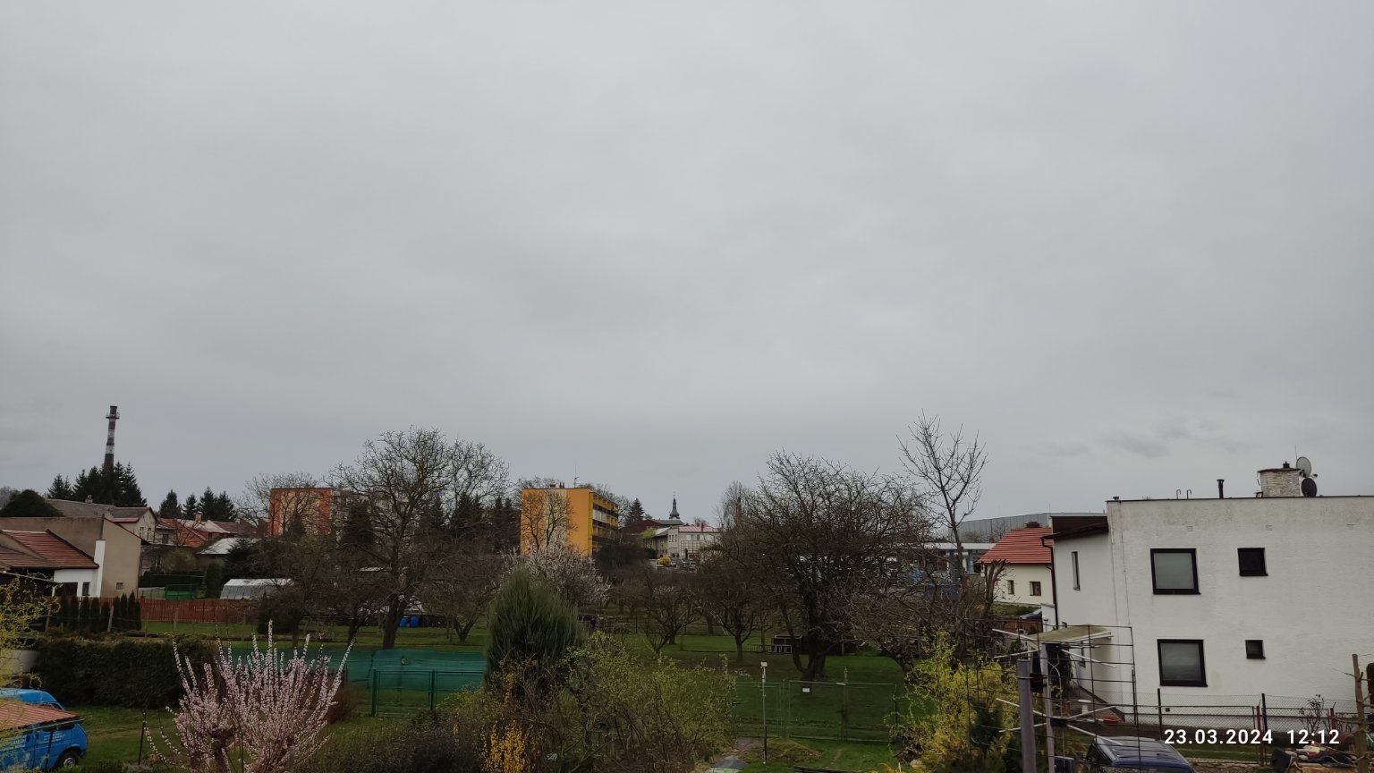 Oblačno. Vítr 3-7 m/s s nárazy okolo 10 m/s. Vlhkost 73%