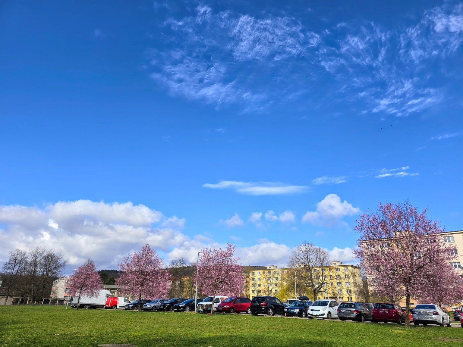 5,1°C, Zataženo až oblačno, Sníh: 0 cm. Rozpad přehaňky timelapse, větrno.