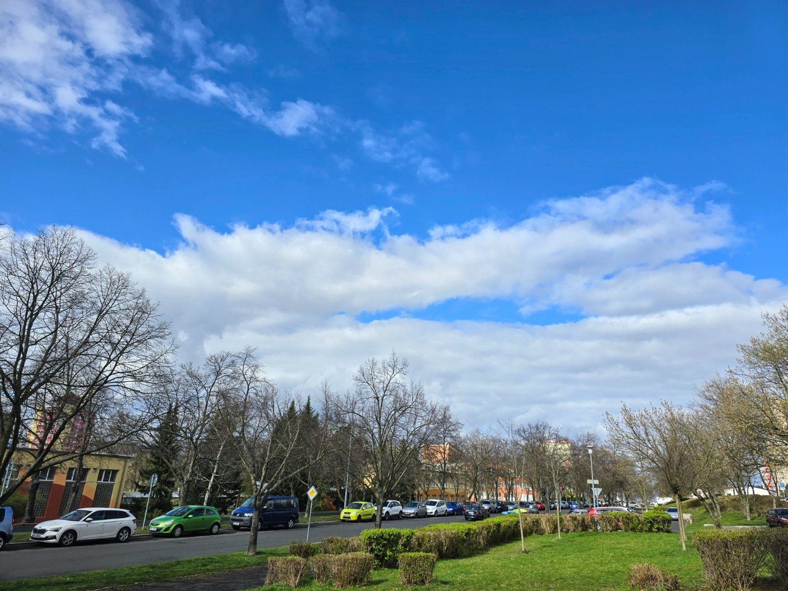 4,4°C, Silná sněhova přehaňka, Sníh: 0 cm. Totální krupková prutrž mračen!