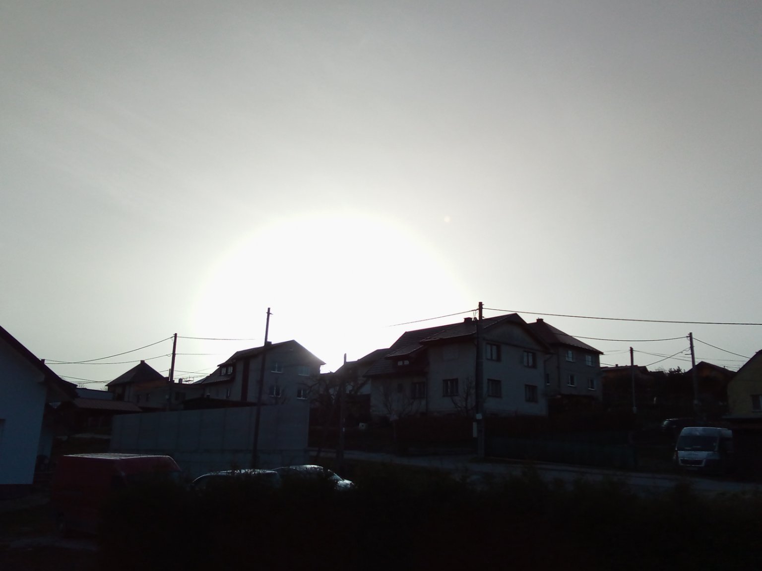 Ani není poznat kolik je oblačností jak je silný zákal. Vítr vane slabý proměnlivý.