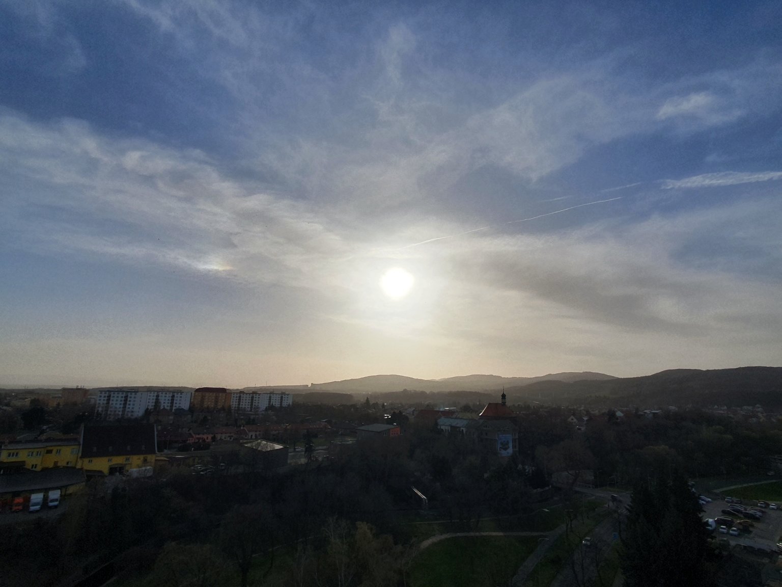 Vlhkost: 50%, Tlak 1003 hPa, vysoká oblačnost, Vítr: 4.6 km/h (SV), Slun.Zář.: 91.24 W/m2, UV: 0.7