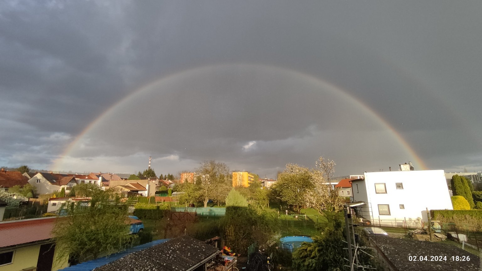 Mírný Z. vítr, vlhkost 58%, tlak 1007 hPa, nejvyšší teplota dnes byla 15,7°C.