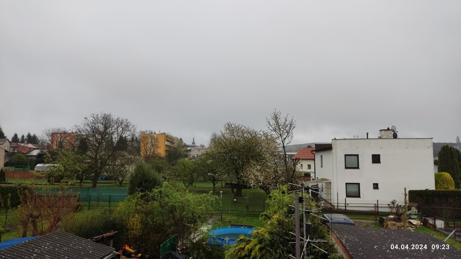 Po dešťové přeháňce. Mírný J. vítr. Nejnižší noční teplota byla 9,1°C, tlak 1012 hPa.