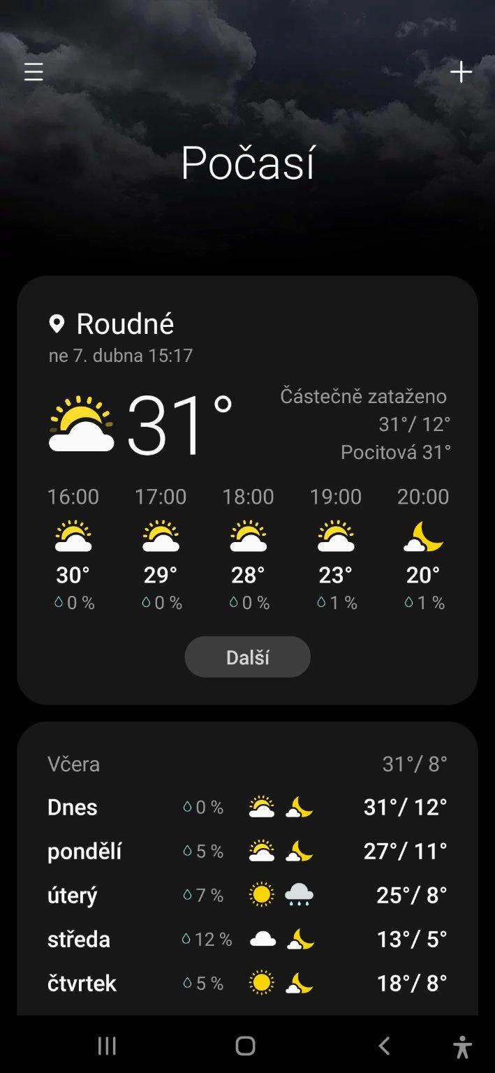 26,8°C, Polojasno až oblačno. Mimořadně teplo!!!