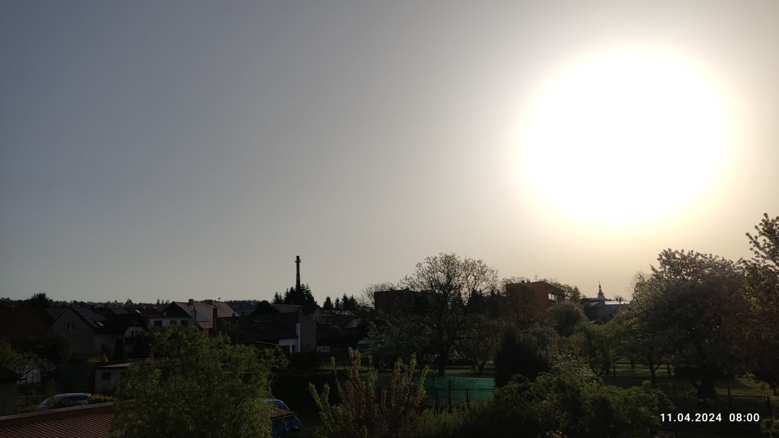 Slabý vítr V. vítr, tlak 1033 hPa - vzestup, nejnižší teplota v noci byla 5°C.