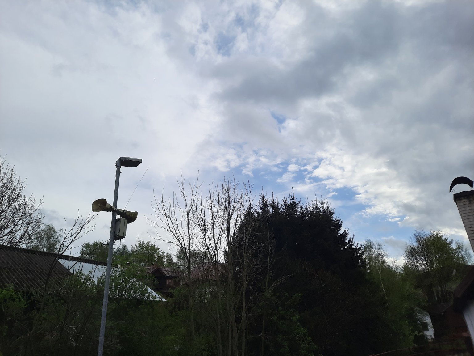Oblačno, mírný západní vítr, tlak 1003 hPa.