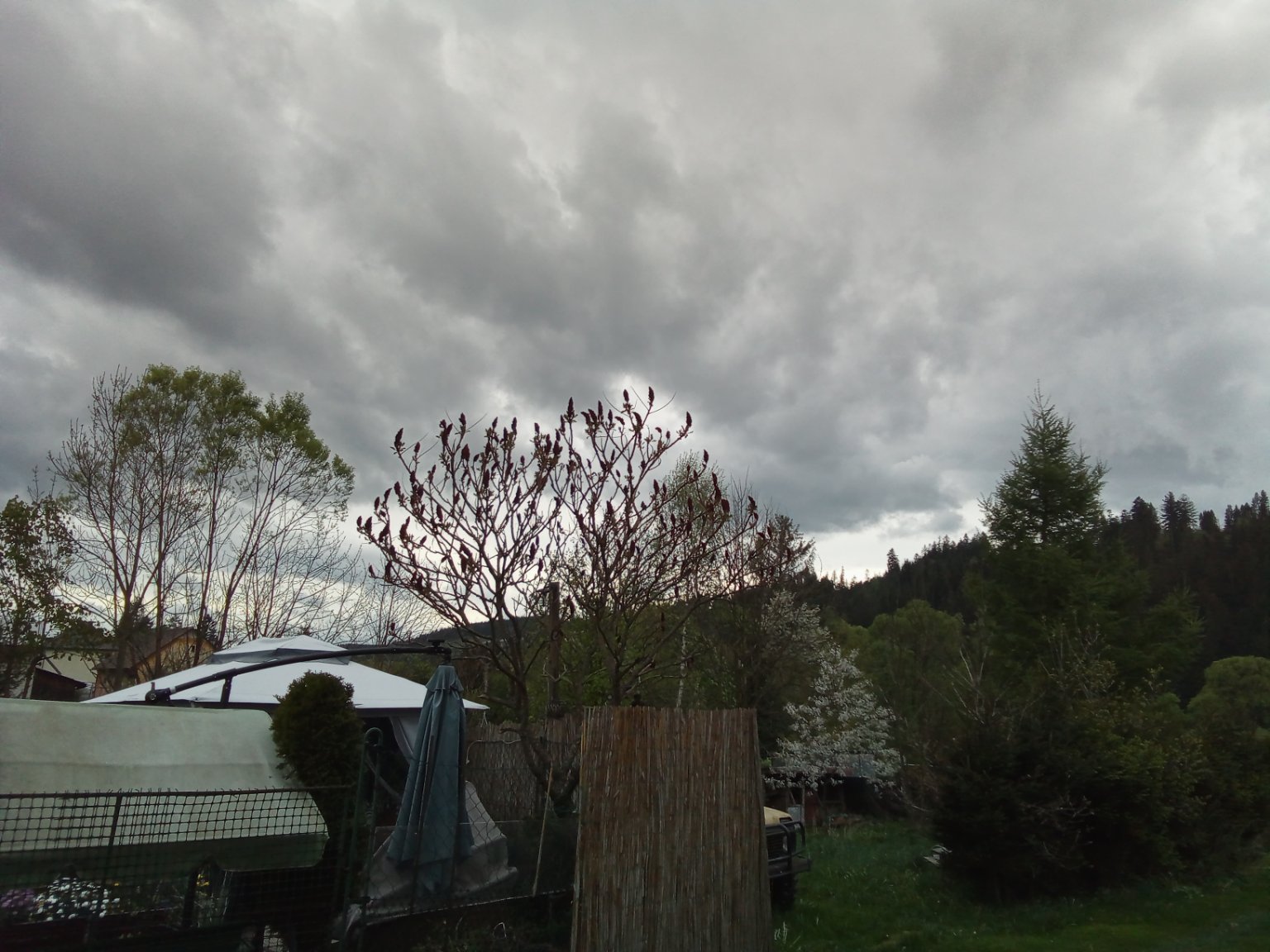 Velmi proměnlivá oblačnost, čerstvý západní vítr, tlak 1000 hPa.