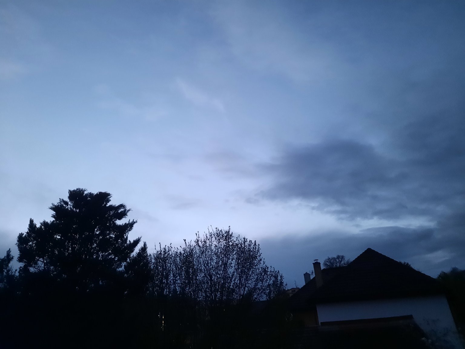 Teplota pomalu klesá, se západem slunce skoro zataženo.