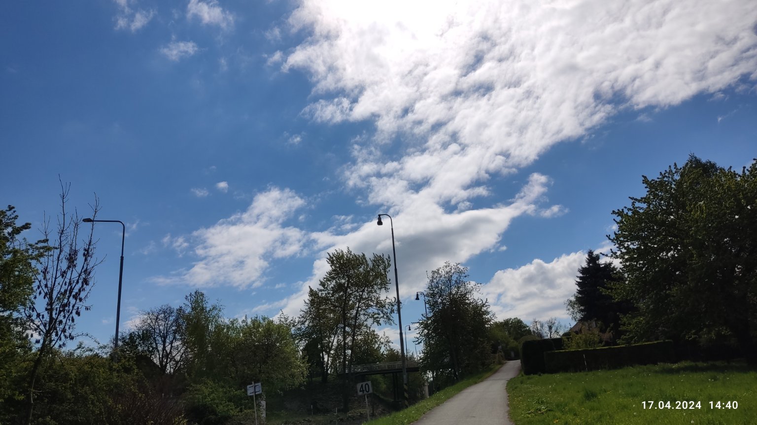 Přeháňka severně od města, zatím polojasno až oblačno. Vítr 1 m/s SV. Vlhkost 59%