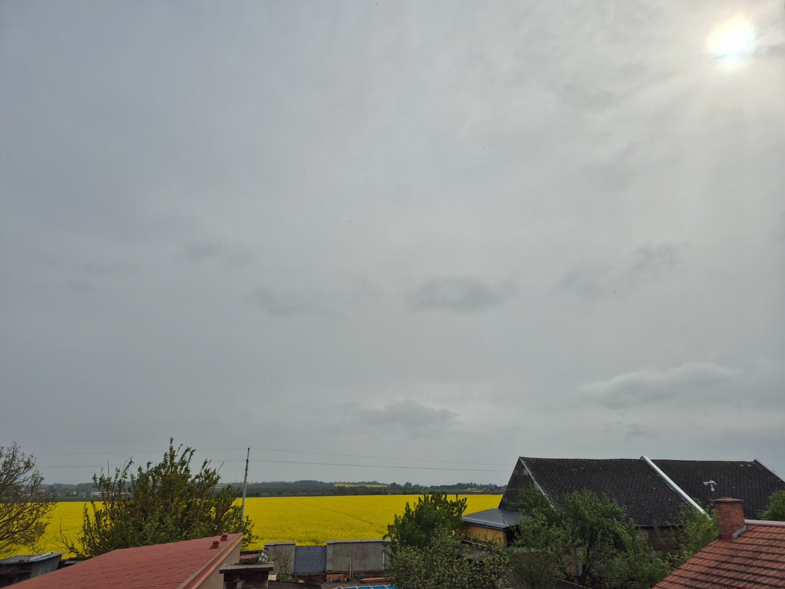 Oblačno. Vítr 2 m/s SV. Vlhkost 82%. Min T dnes 2,0°C