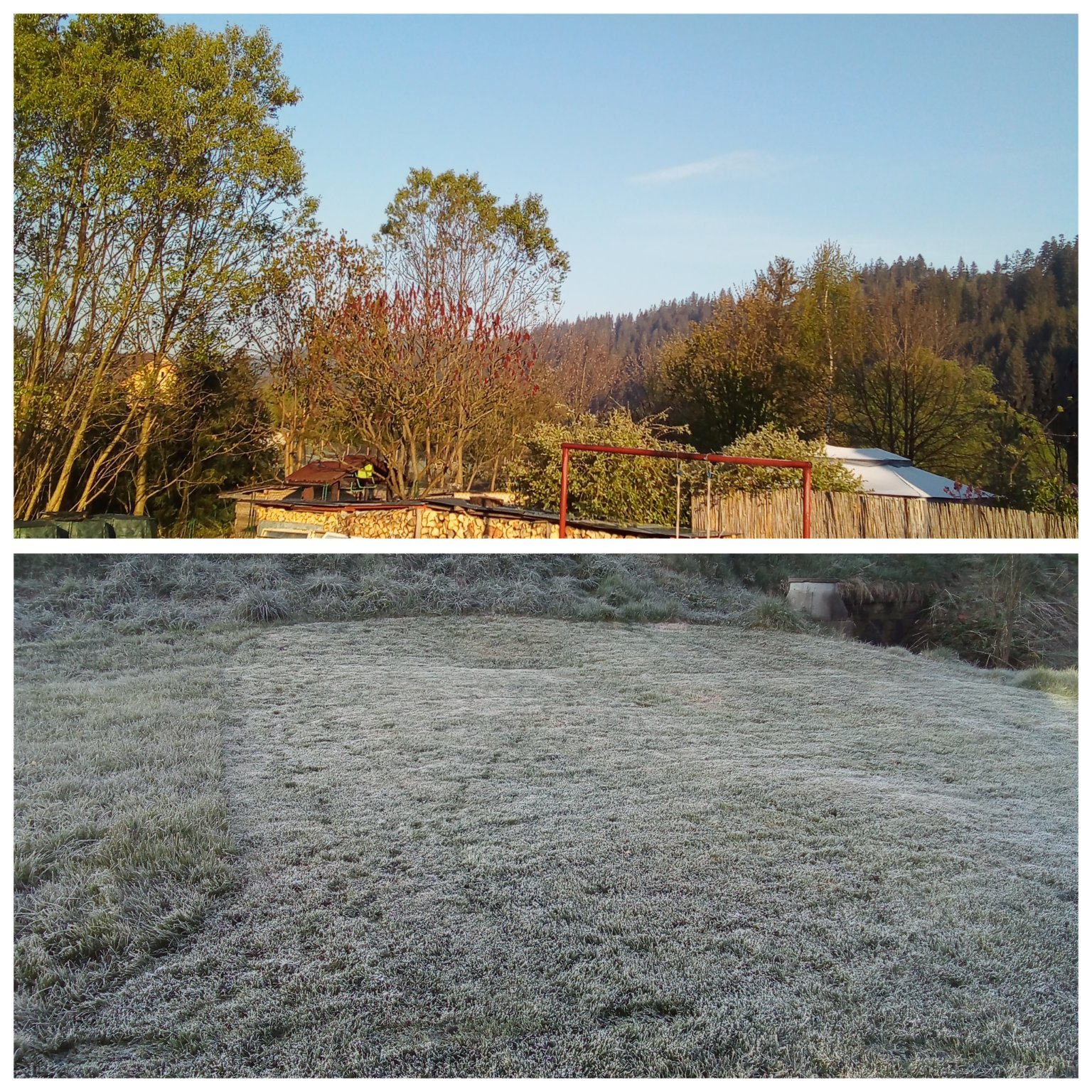klidno, východ slunce, halový sloup se tvořil