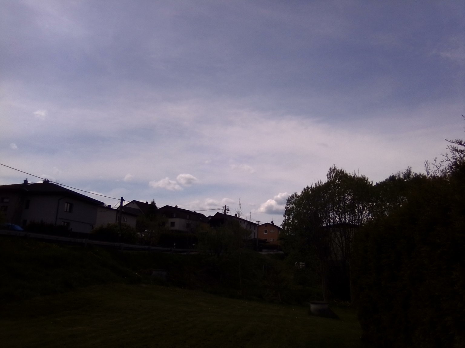 Je skoro zataženo hustou vysokou oblačností a vane mírný vítr.