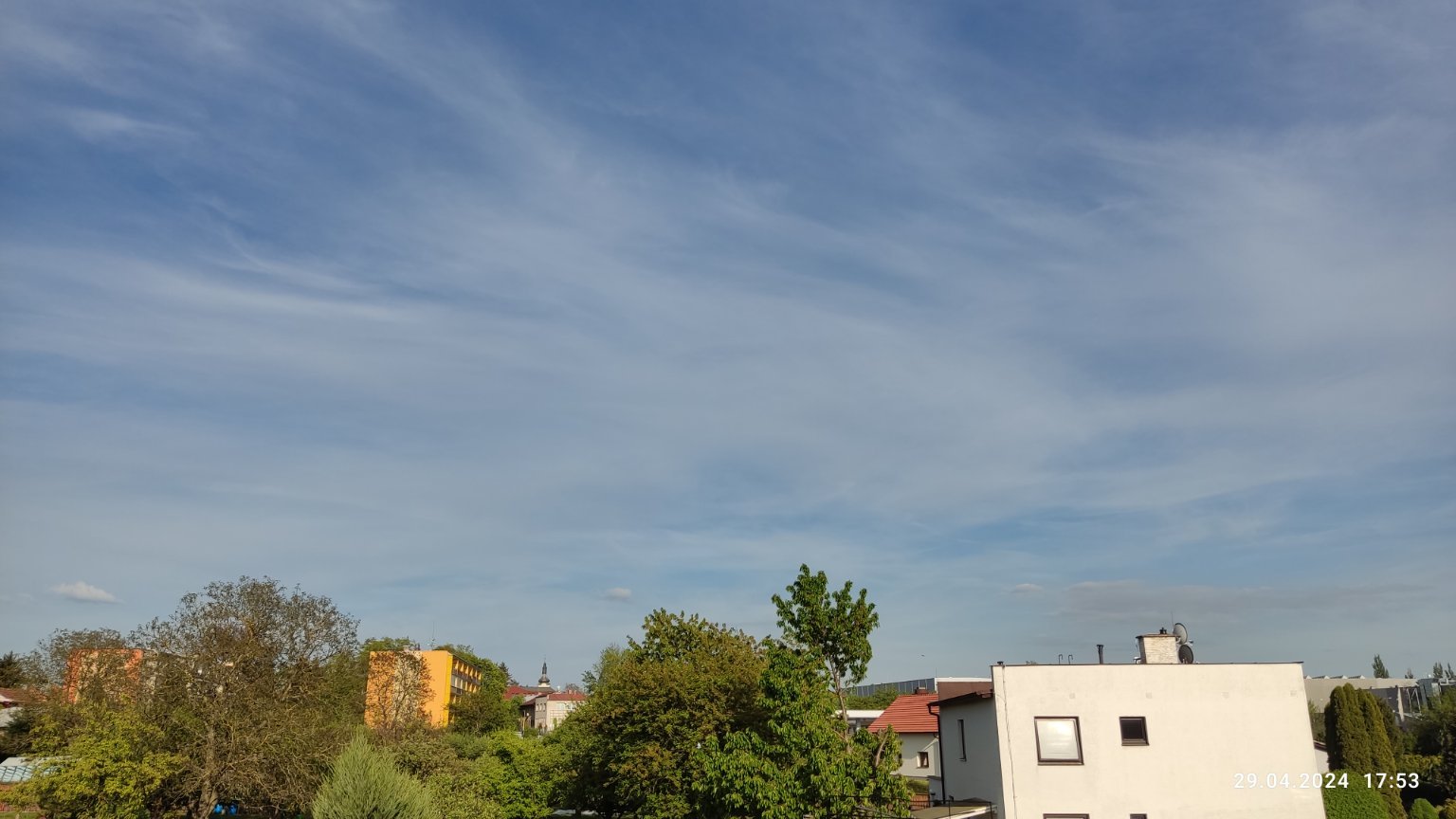 Vlhkost: 29%, Tlak 1031 hPa, vysoká oblačnost, Vítr: 4.6 km/h (J), Slun.Zář.: 109.89 W/m2