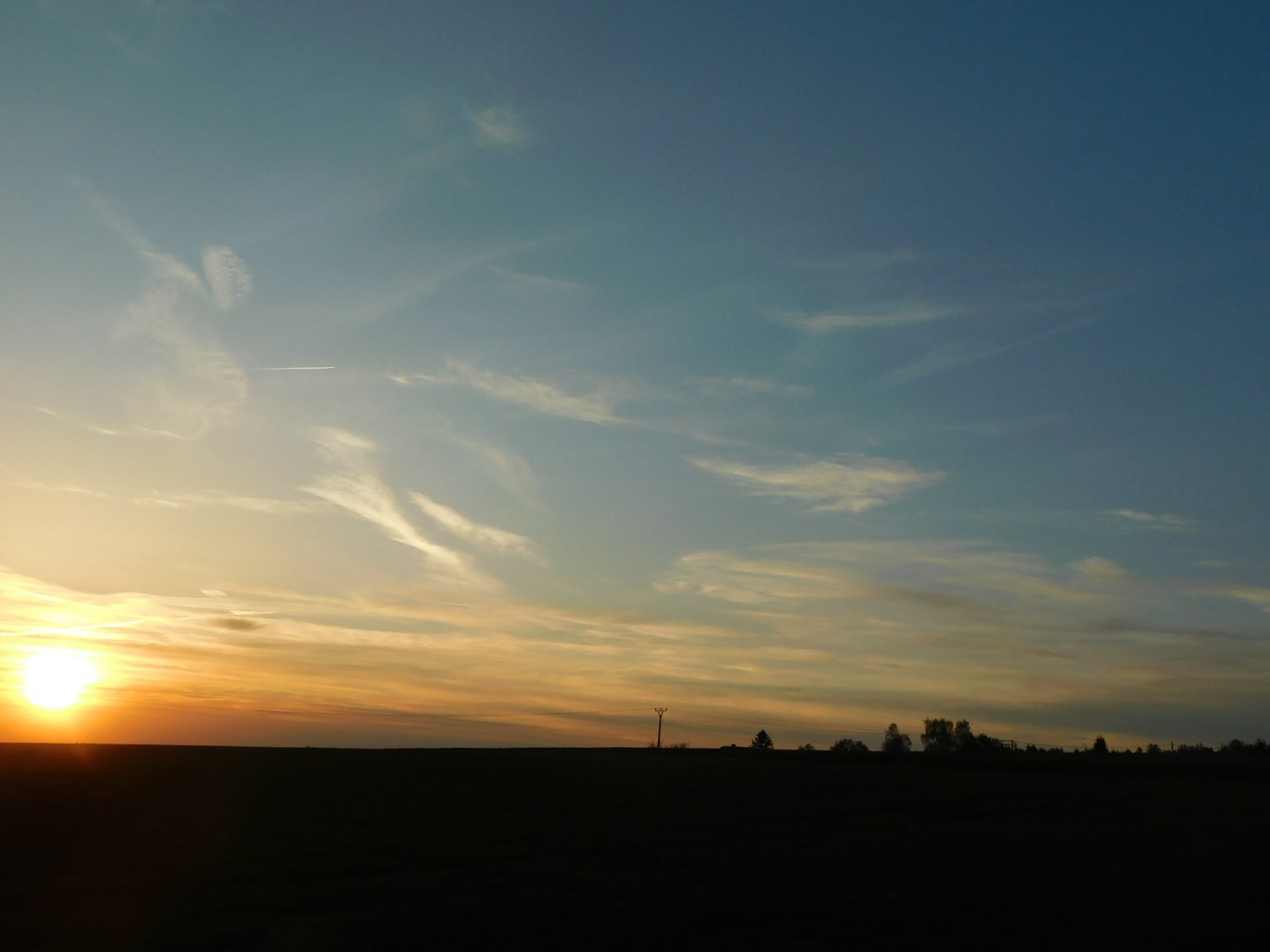 Ci oblačnost, klidno, západ slunce