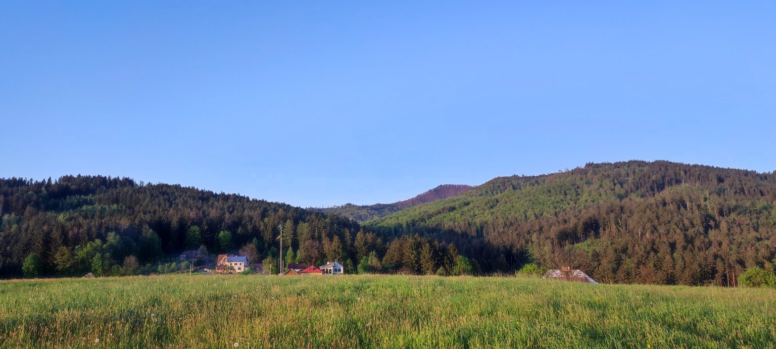 18,4°C, Skoro jasno. Je typický letní Jablunkovsky večer