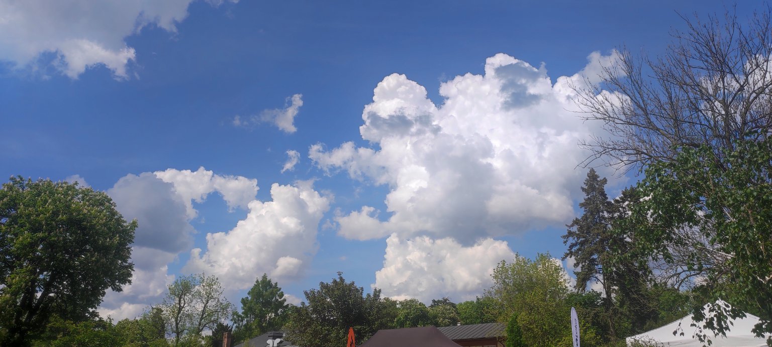 Bouřkové mraky na hranici s Polskem proráží jiné mraky nad sebou a vytváří hezky uhlazený klobouček