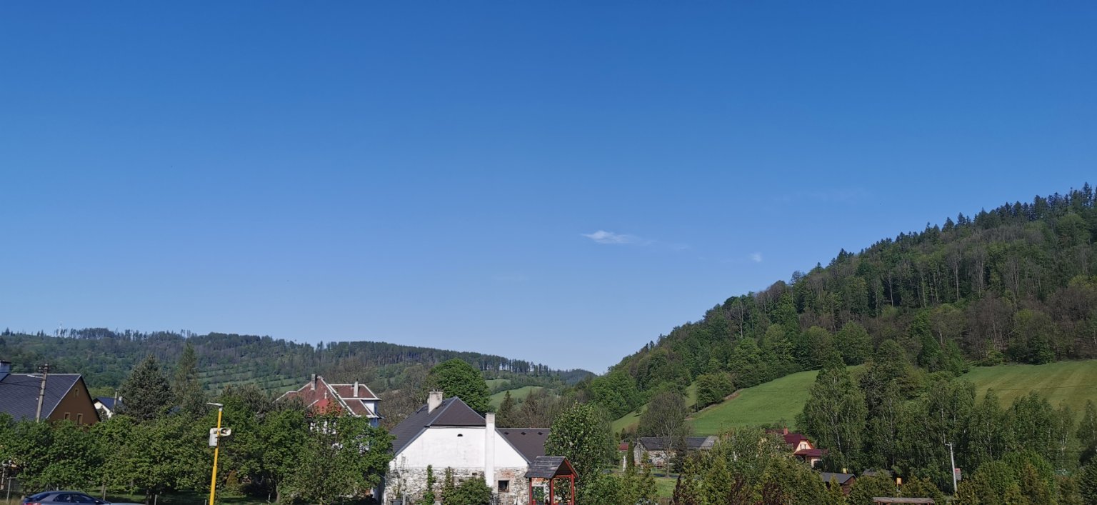 Skoro zataženo. Vítr 1 m/s JJZ. Vlhkost 88%. Min T dnes 8,9°C, Most-Vtelno min T 6,7°C