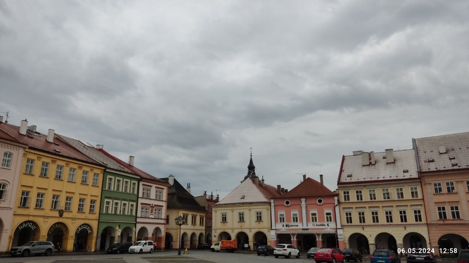 22,8°C, Oblačno až polojasno. Zatím je klid, ale kupovita oblačnost se už tvoři.