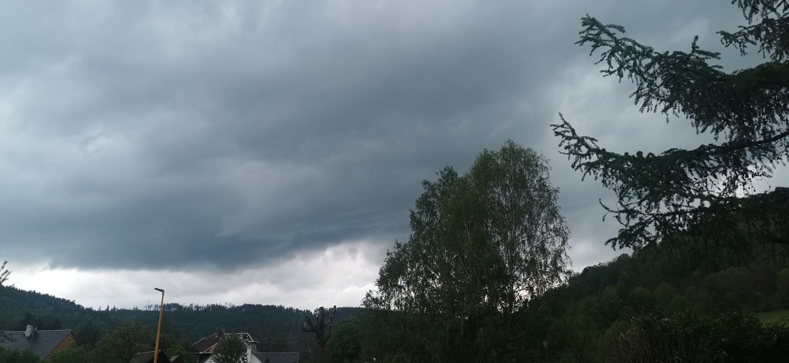 Oblačno, búrka v diaľke