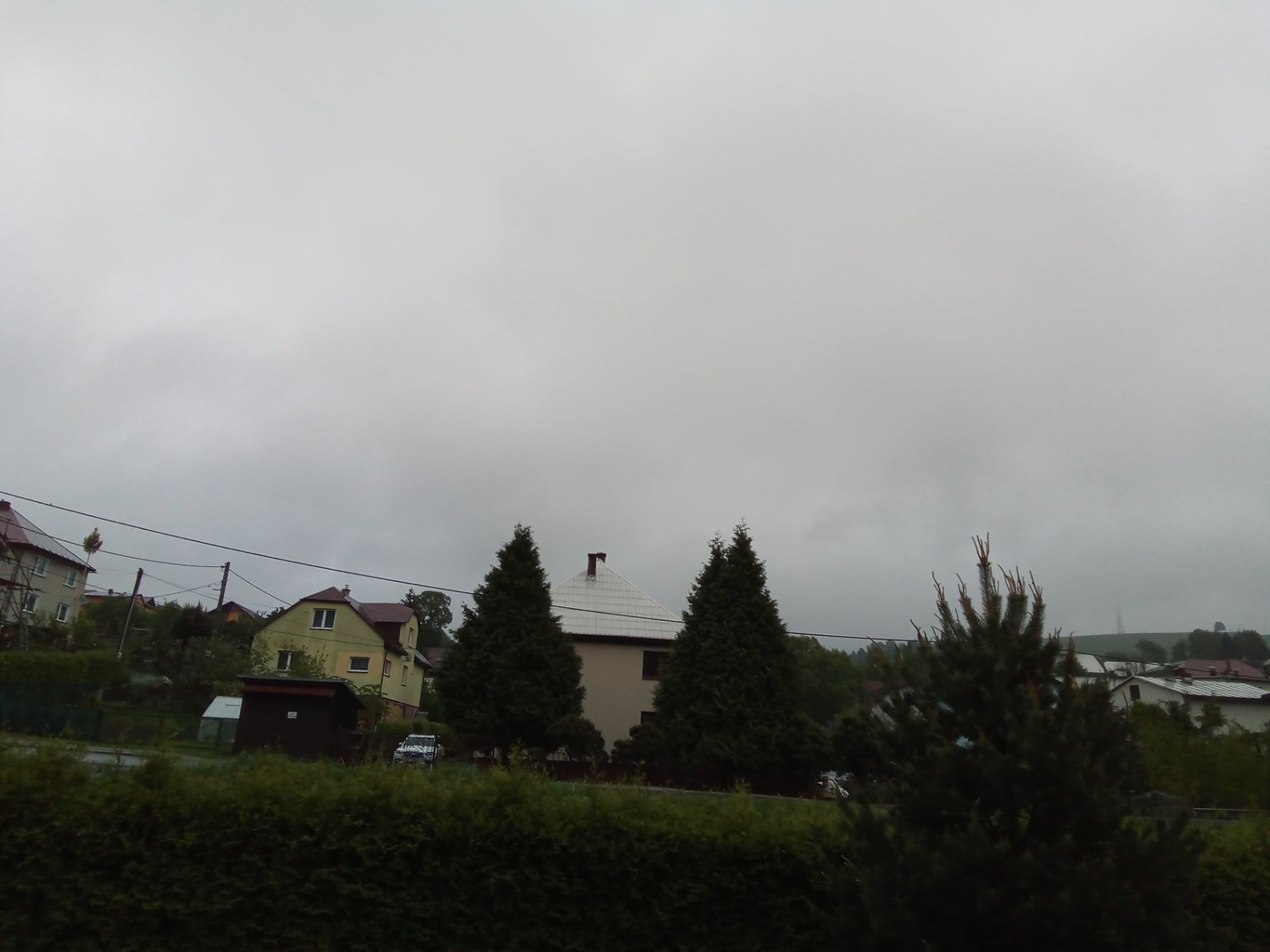 Aktuálně převažuje většinou zataženo, slabý až mírný trvalejší déšť a fouká většinou vánek