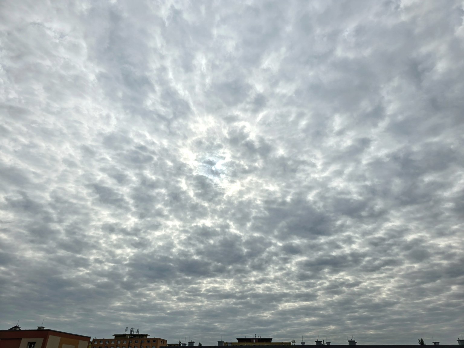 Je zataženo a bezvětří. Před chvílí spadlo několik kapek.