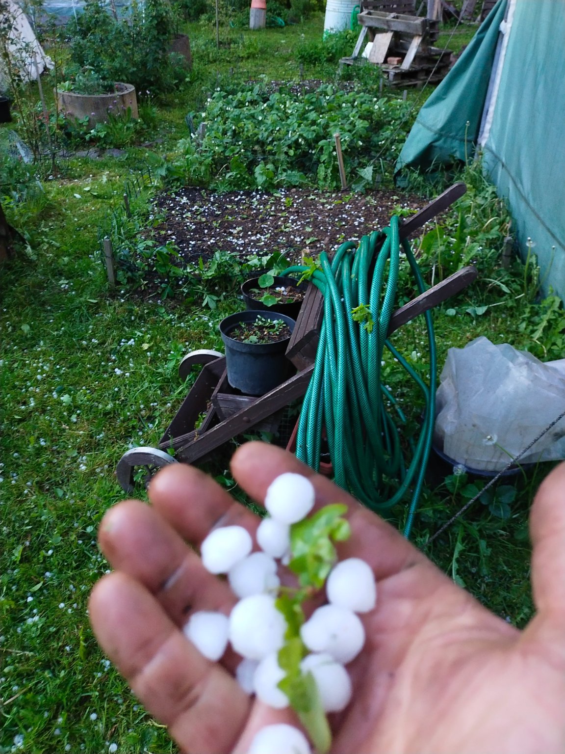 Přímá bouřka dala 8.4 mm, pár krup do 1 cm.