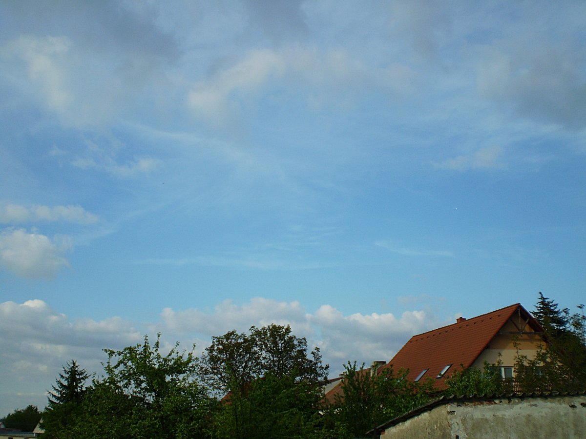 foto z 2014 05 19 v 16:25 zachycuje hradbu mraků - ty k nám nedošly - máme nad hlavou sem tam mráček-fouká teplý vítr - teplota je celé odpoledné stejná