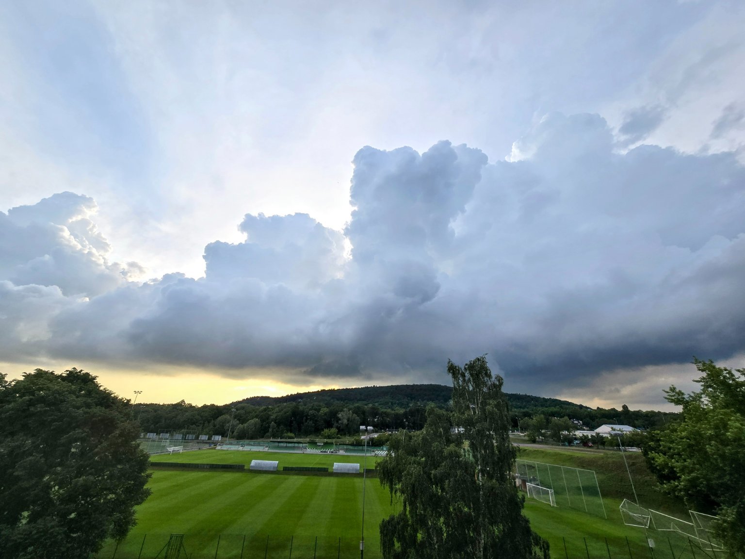 Bouřkový mrak, slejvák, zatím bez blesků, ani hromy nejsou slyšet ( panorama snímek)