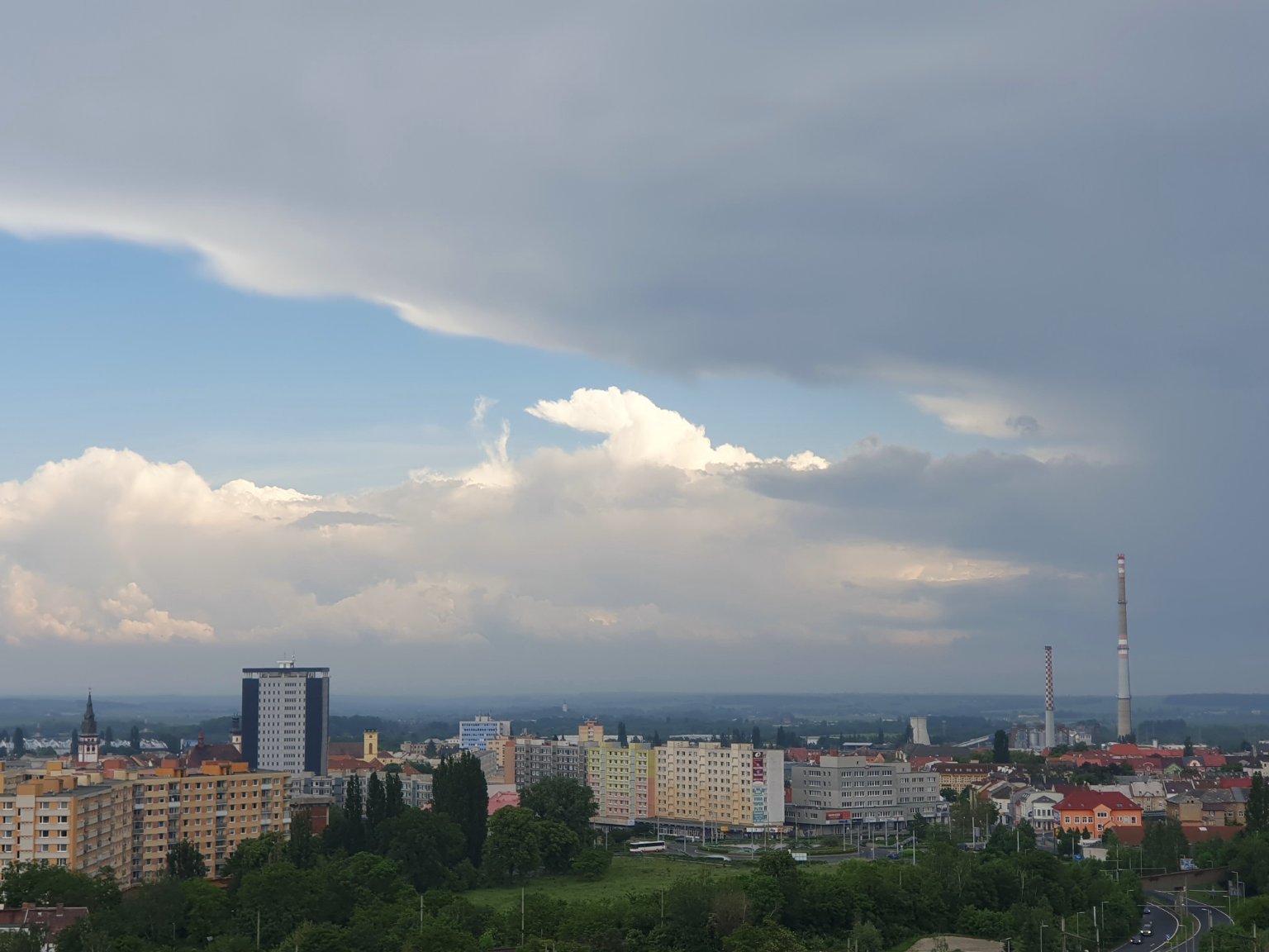 Cumulus Mediocris (na radaru modrá). Extrémní vedro