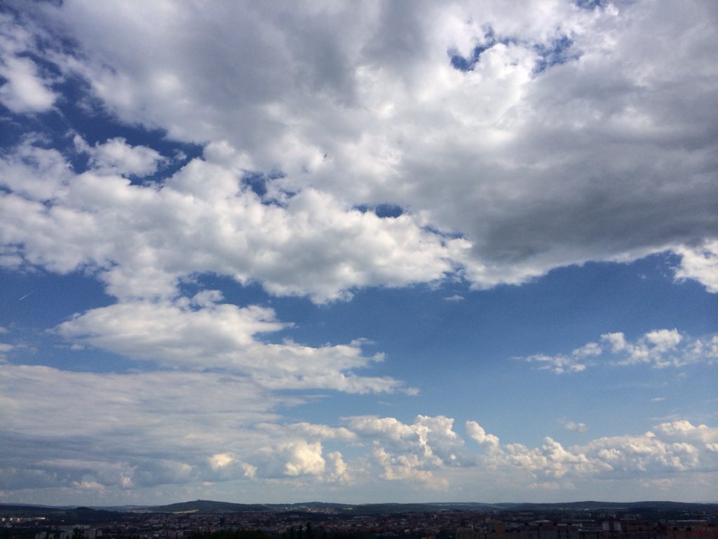 Oblačnost 38,8%, zákl.oblačnosti 2266,66m, tlak 1017,1hPa, dohlednost 35km, vlhkost 37,6%, čerstvý JJV vítr 156° 9,8m/s(5 Bft), poc.teplota 16,91°C, rosný bod 8,65°C, abs.vlhkost 8,25g/m3, tepl.mraků 5,11°C, UV-Index 5,8, ozon 360,1D.U.(-5%, podprůměrný stav).