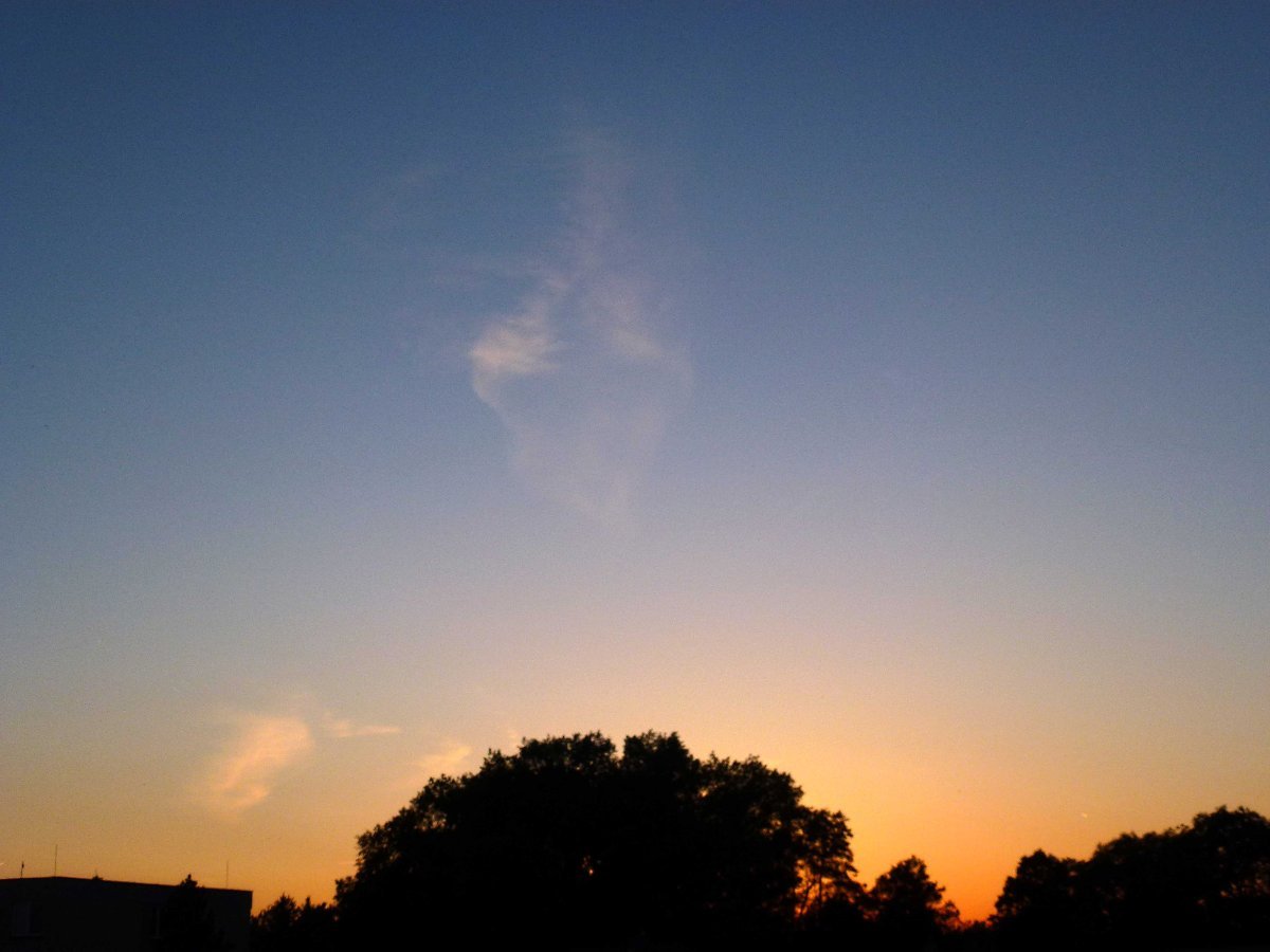 Jasno, bezvětří, tlak: 992 hPa,relativní vlhkost: 75 %, nádherný večer.
