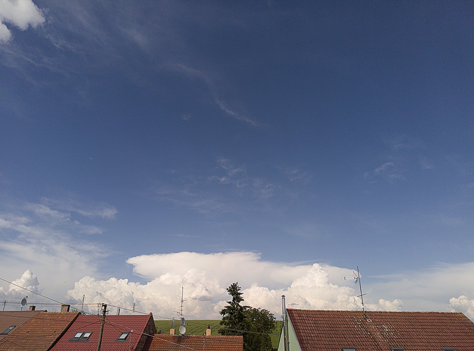 20,1°C, Vzdálená bouřka. Ty velké bouřky jdou uplně opačnym směrem než je třeba... :-( Ale z tohohleho mračku se malá bouřka vytvořila. :-)