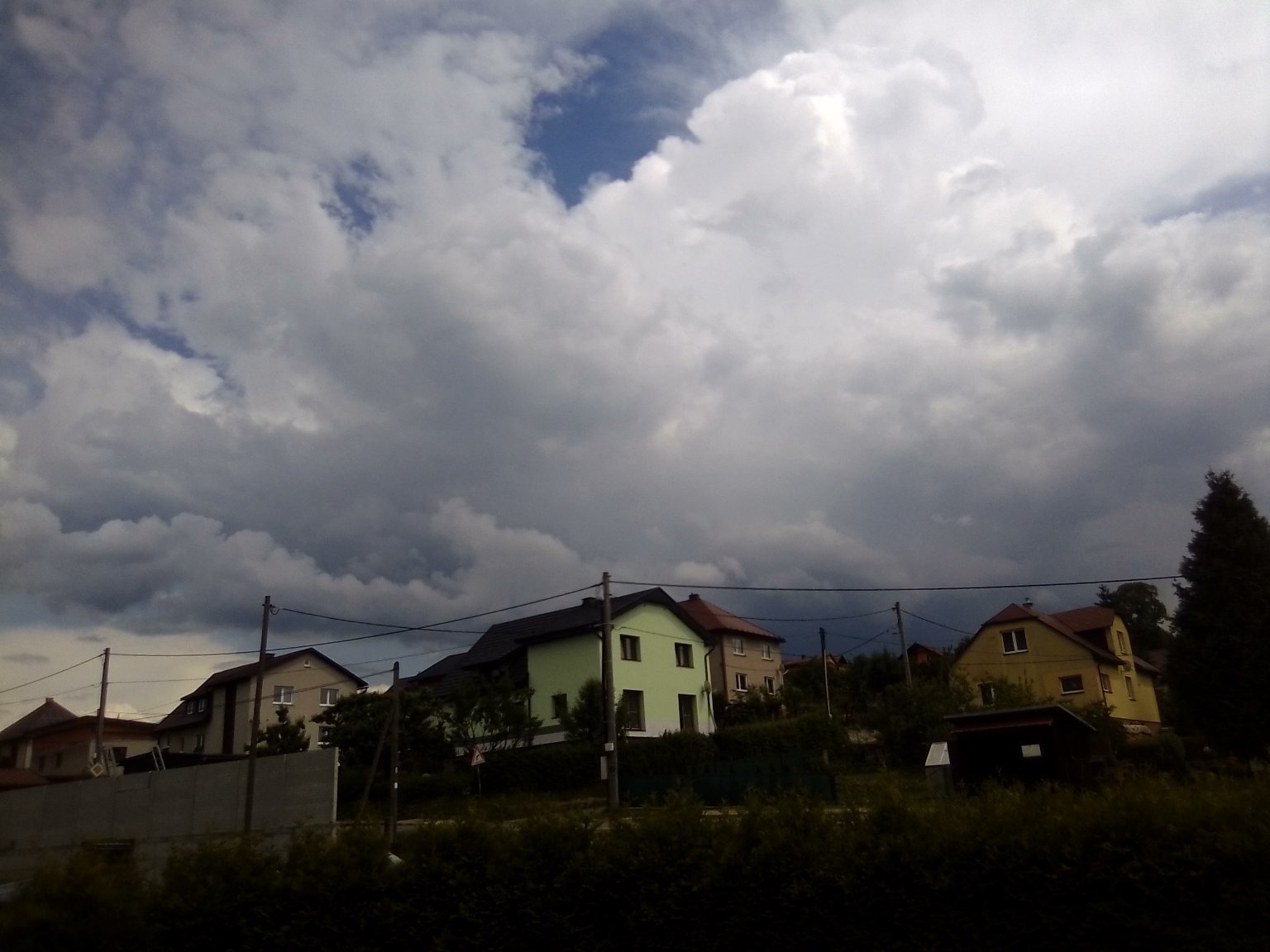 Po dešťové přeháňce. Je bezvětří, tlak: 1005hPa.