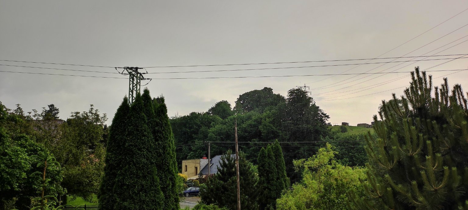 Déšť, zatím jsem nezaregistroval žádný blesk, ani dunění