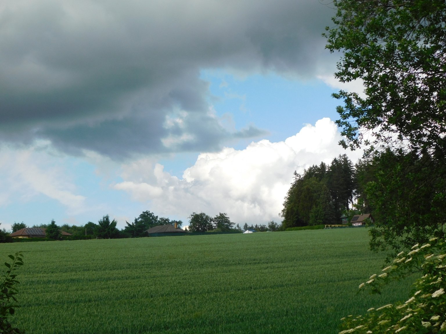 Pěkná bouřka se dorazila od severozápadu. K přívalovému dešti se přidává vítr. Hezky bouří.