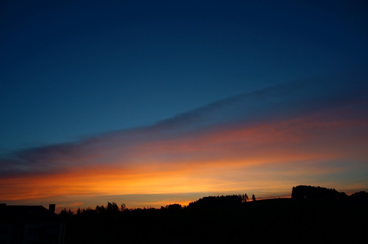JV větřík foukal celou noc. Slabý opar kolem obzoru.