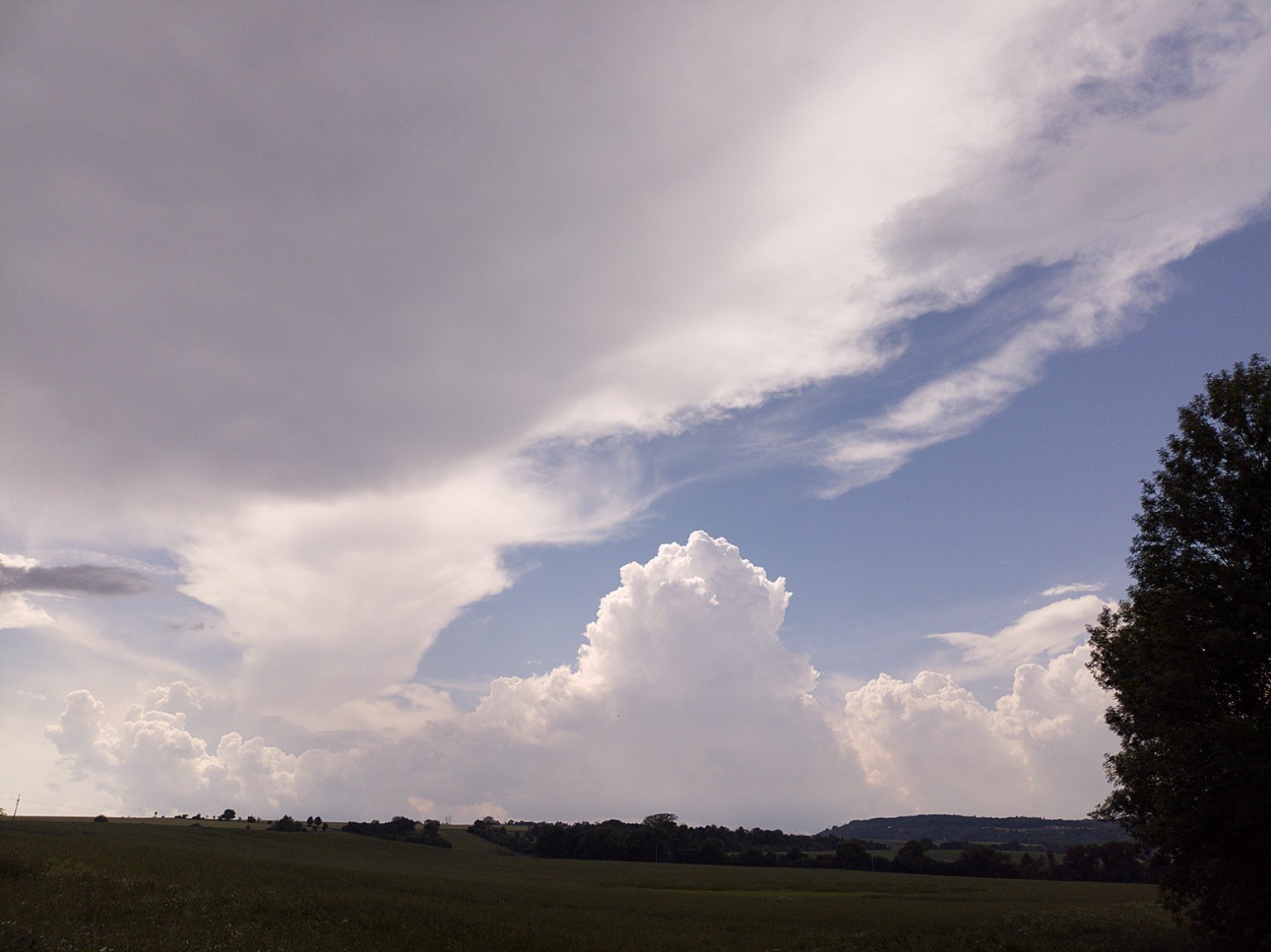 Cca 20 km daleko, přechází bouřka v okolí Milešovky. Občas je slyšet hrom z dálky