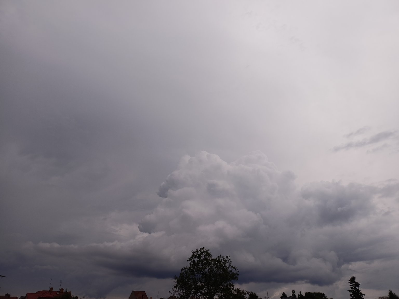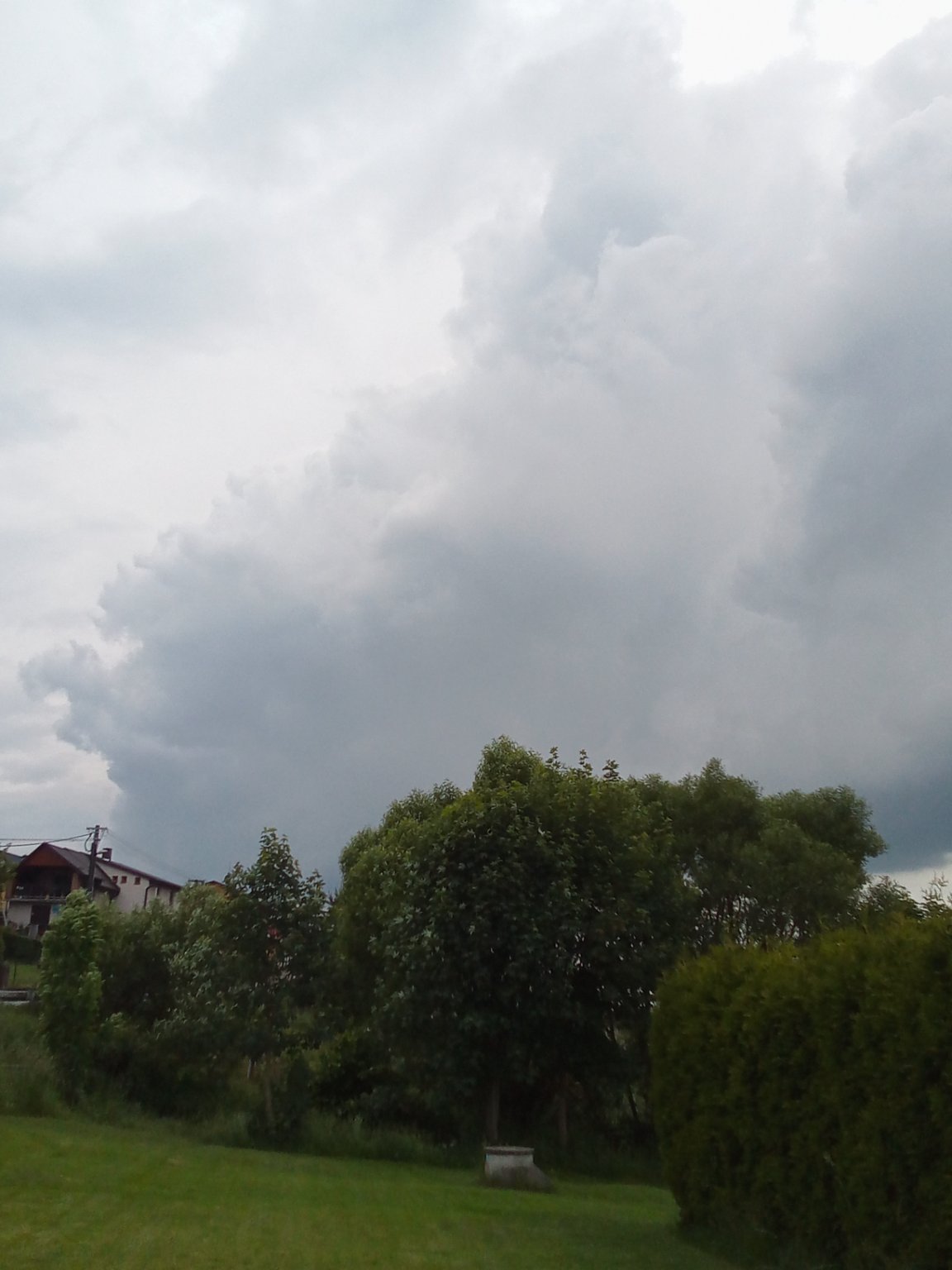 Rosný bod 14,9°C, vlhkost 72 %. Vánek, tlak 1018,29 hPa. Už se sem žene další hrůza, asi dlouho nepršalo, naposledy před hodinou a půl 10,5 mm...