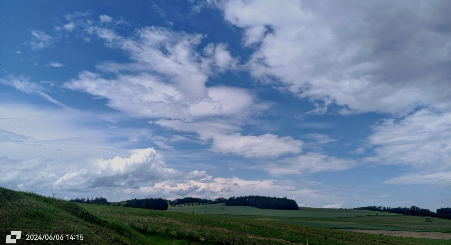 Tlak 1020 hPa, vítr S 1,1 km /hod, vlhkost 75 %. Pohoda,