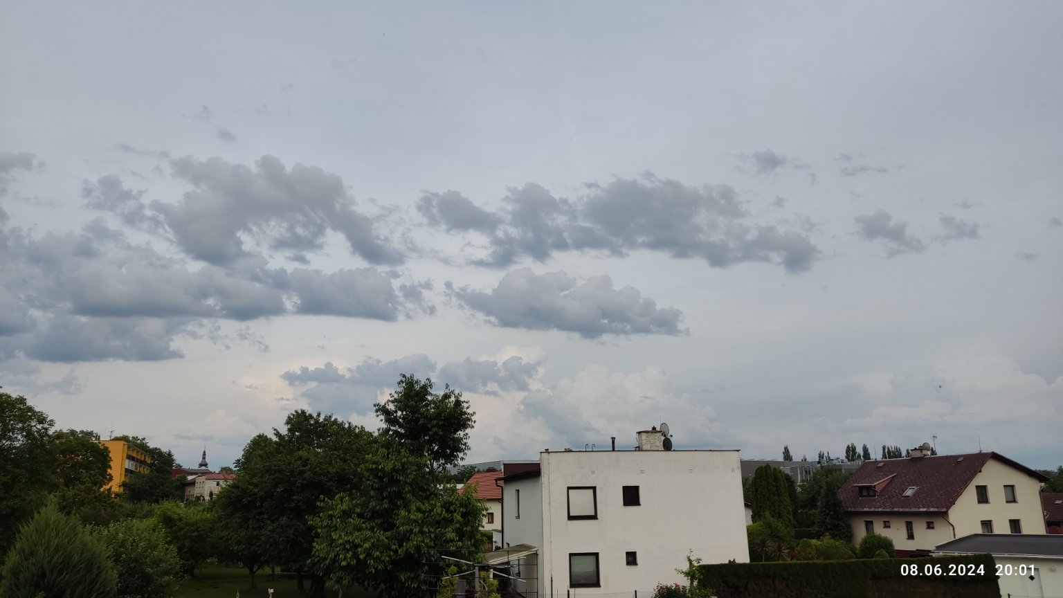 Pozvolný nárůst kupovité oblačnosti jihozápadním směrem. Vane slabý jihovýchodní vítr, tlak: 1006hPa.