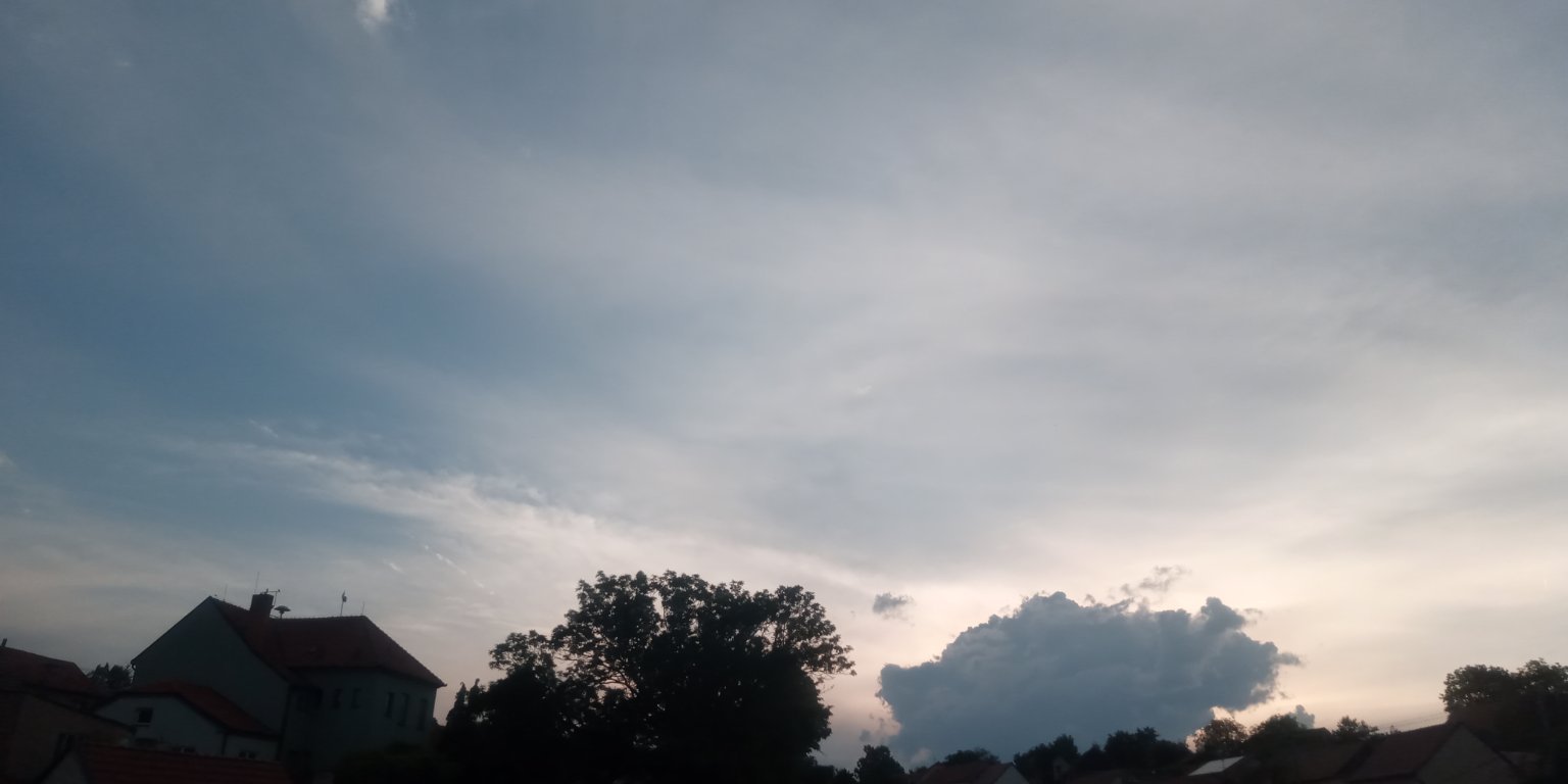 Severovýchodně je vidět dosti vzdálená bouřka.