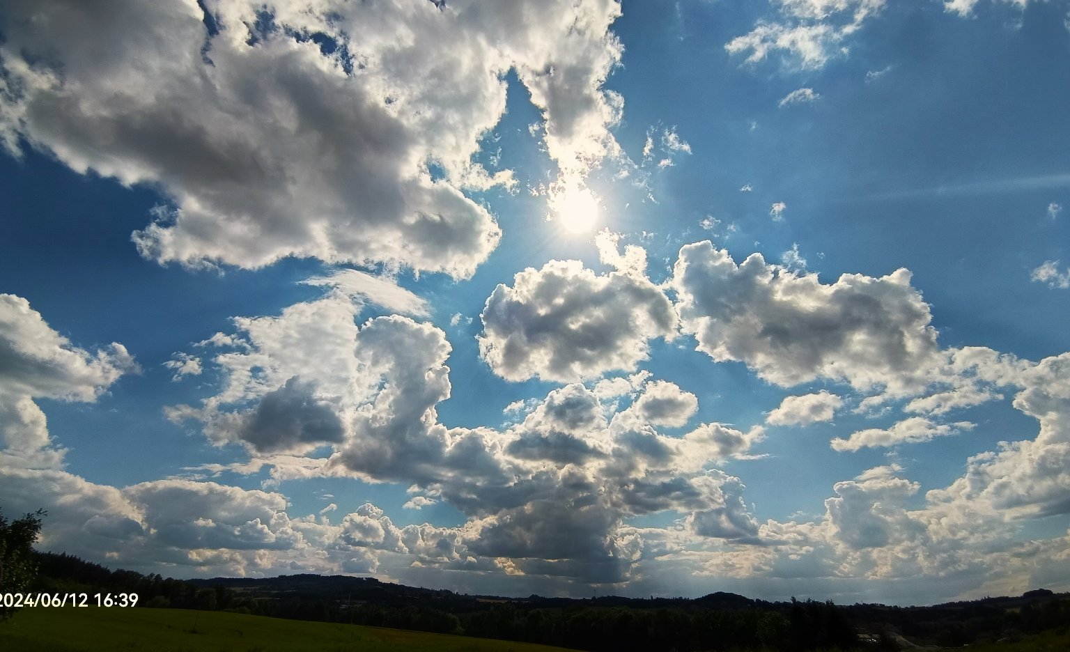 Dopoledne bylo zatažené a deštivé, spadly 2mm. Odpoledne se oblačnost částečně protrhala a přechodně bylo i slunečno. Vane mírný severovýchodní vítr, tlak: 1016hPa.