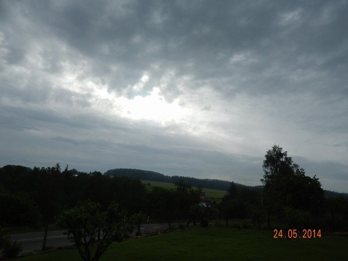 foto z 2014 05 24 v 07:51 zachycuje oblohu bez mráčků - je tam jeden celý šedivý - není mu vidět konec ani začátek, vítr nefouká