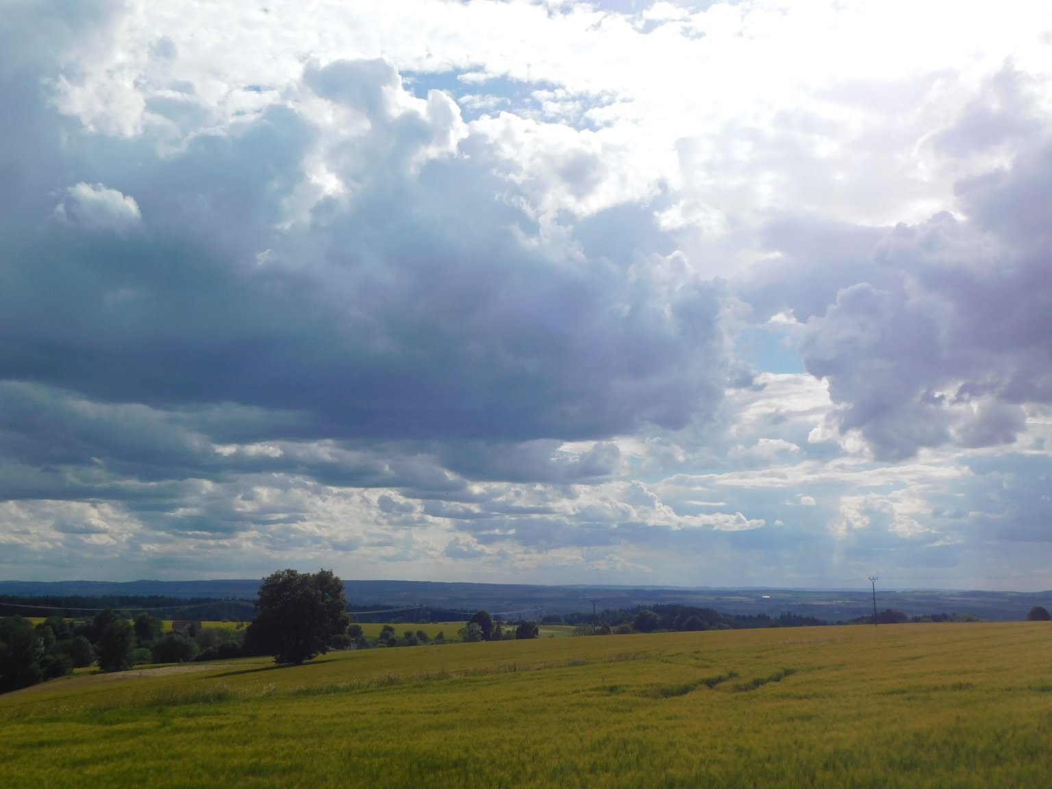 Mírný jižní vítr, na SZ. bouřka. Tlak 1014 hPa.